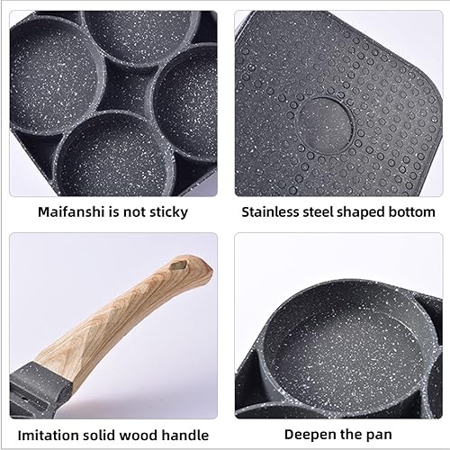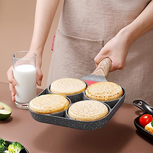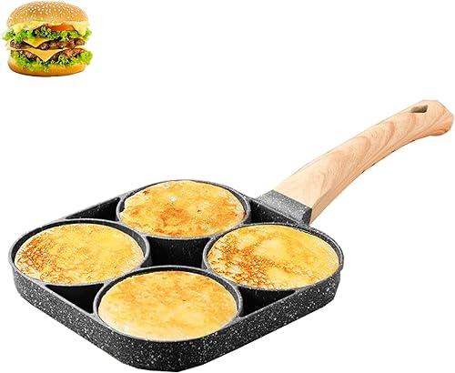 NC Poêle à Omelette 4 Trous,multi-usages, pour pancakes, steaks hachés, œufs Poêle à Pancakes Omelette Antiadhésive en Aluminium pour, pour Cuisinière à Gaz et Cuisinière à Induction