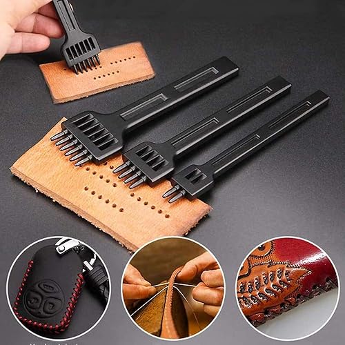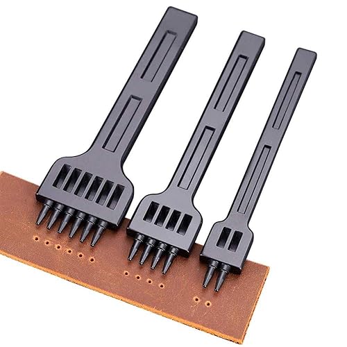 Ensemble d'Outils de Perforation en Cuir, 3 Pièces Trou de Bricolage, Poinçons, DIY Artisanat Métal 2/4/6 Broches Outils Couture pour Ceinture (5 MM)