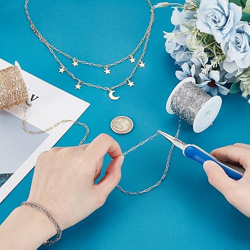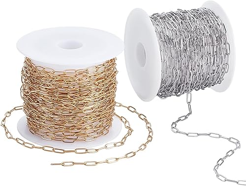 PH PandaHall 10m Chaînes à Trombones en Acier Inoxydable Plaqué or 18K, 2.5mm Chaînes à Maillons Ovales Bobine pour Colliers Bracelets Bijoux et Loisirs Créatifs