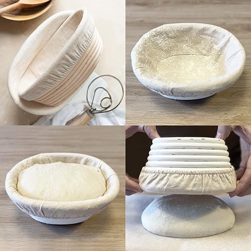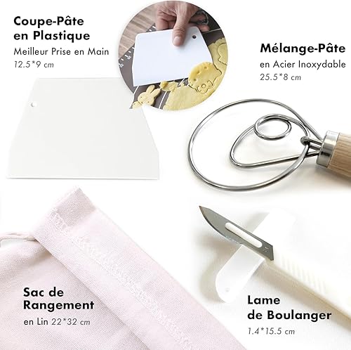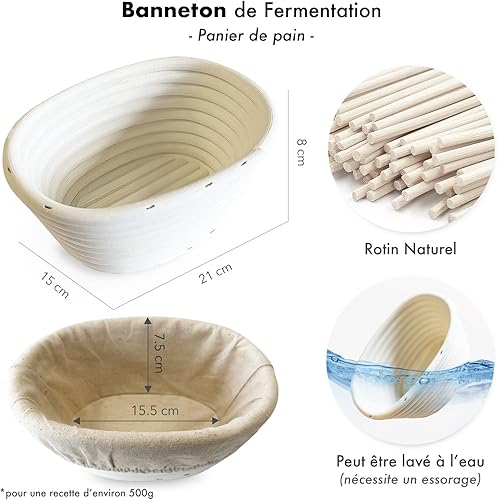 Banneton à Pain pour Pain Maison(Taille Améliorée 2023).Tablier de Cuisine en Coton.Coupe Pâte.Sac de Rangement en Lin.Lame de Boulanger. Mélange Pâte en Acier Inoxydable.Accessoire Boulanger