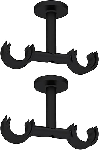 Empyr Supports De Tringle À Rideaux Double – Fixation Plafond – Design Moderne – Métal Robuste – Diamètre 28 mm – Noir