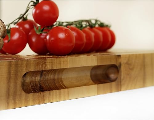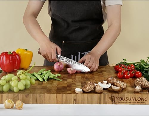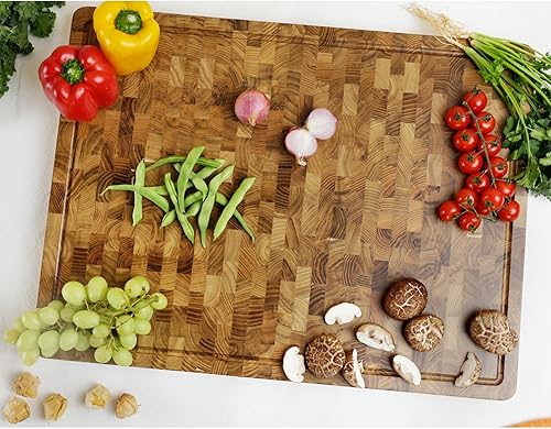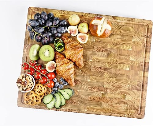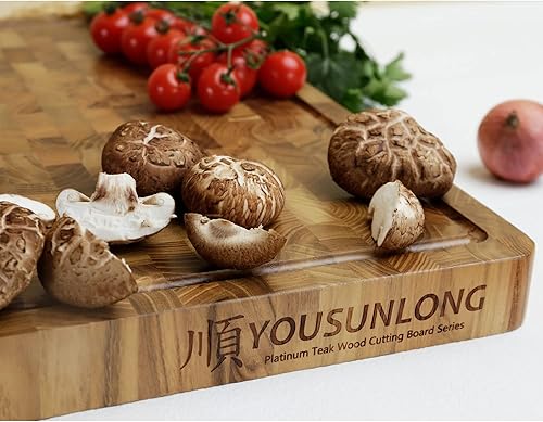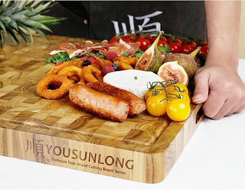 YOUSUNLONG Grande planche à découper - 50,8x40,6x3,8 cm - Planche à découper en teck durable avec rainure à jus intégrée et poignée -Pour les planches à griller la dinde, la viande et le fromage