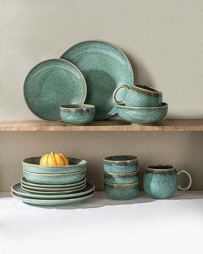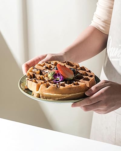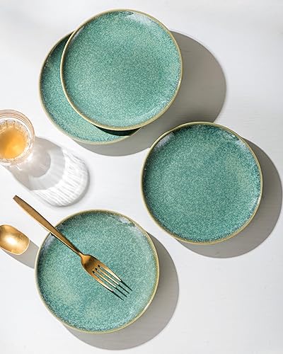 HENXFEN LEAD Assiettes plates Set d'assiettes en porcelaine, 4 pièces Assiettes à pâtes Assiettes à déjeuner, 26cm Grandes assiettes, Vert brillant