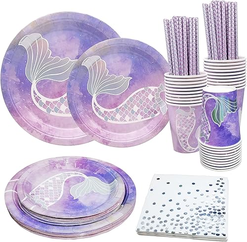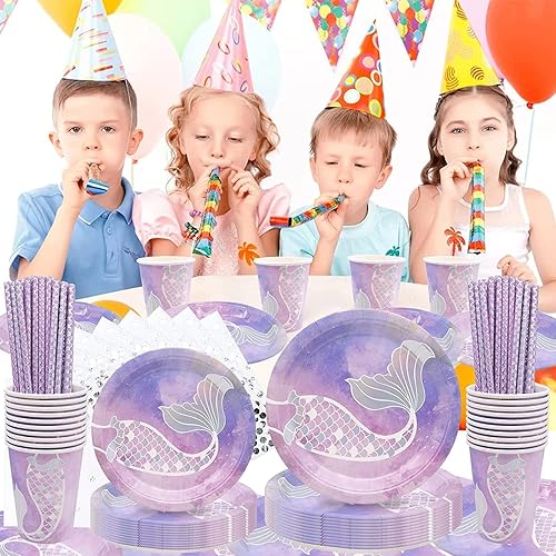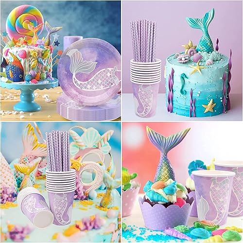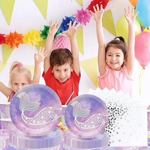 Bymivofun 100 Pcs Vaisselle Sirène, pour 20 Invités, Ensemble de Fournitures de Fête pour Enfants Sirène, pour Enfants Enfants Anniversaire Thème Fête Baby Shower Décoration