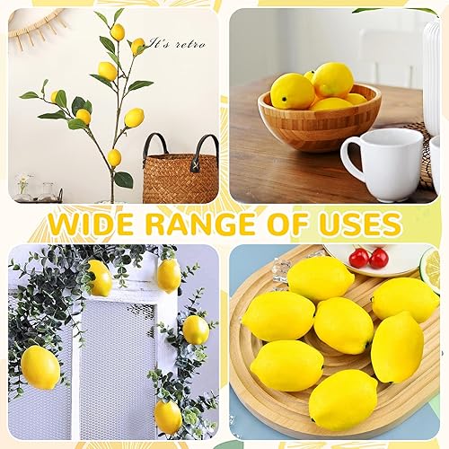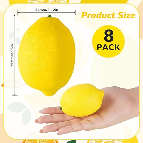 Lot de 8 citrons décoratifs pour fête - Fruits artificiels frais - Citron jaune - Décoration de table - Faux fruits artificiels - Citron réaliste