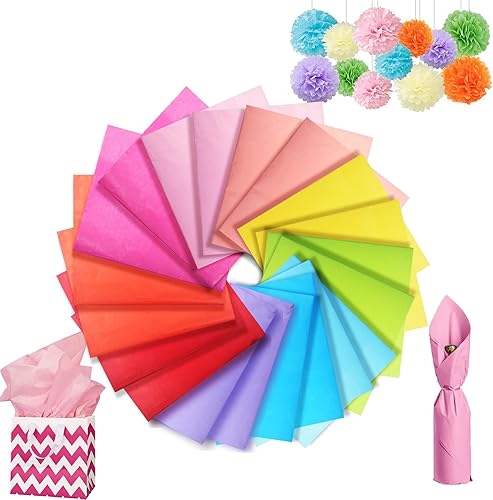 Larcenciel 100 Feuilles Papier de Soie Coloré pour Fête des Mères, papier d'emballage, feuilles de papier d'emballage pour papier de soie décoratif Art Craft, 10 couleurs, 66 x50CM