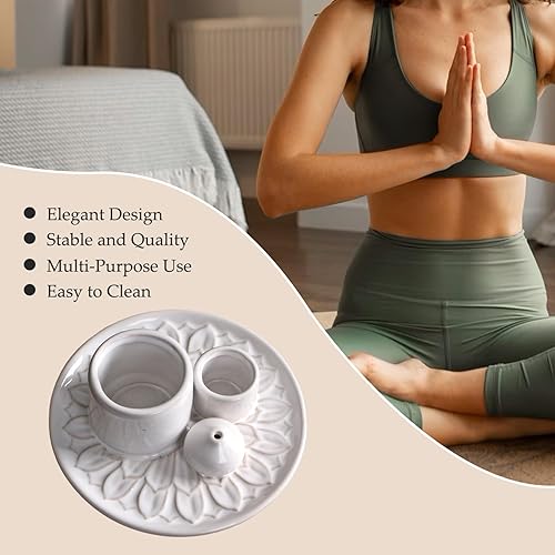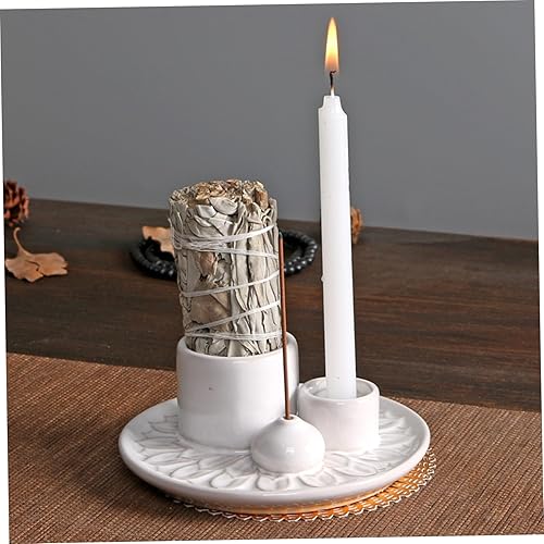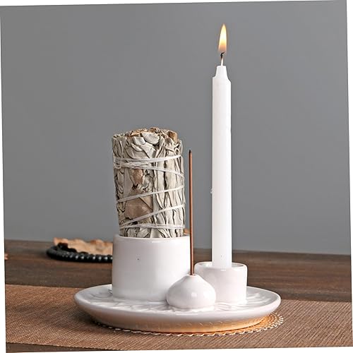 Brûleur Palo Santo 3 en 1 Porte-Sage en céramique 5x2 Pouces Brûleur d'encens Minimaliste et encens décoratif pour la Maison du Temple Yoga