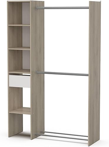 Dmora - Grande Garde-Robe Adour, Meubles de Chambre, Penderie de Plain-Pied, Placard à vêtements, 118x40 h183 cm, Chêne et Blanc Mat