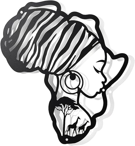 nbeads Africa Map Décoration Murale en Métal, Style Mat Femmes Tenture Murale Décor Silhouette Art Mural pour la Maison Jardin Hôtel Bureau Mur Festival Décoration Cadeau, 10.79×11.8 Pouces