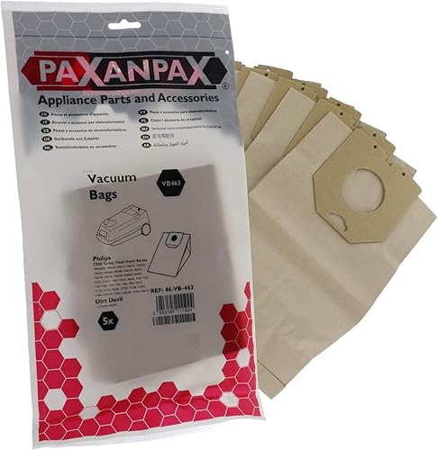 Paxanpax VB463 Lot de 5 Sacs en Papier compatibles Philips T520 Turbo, Vitall Oslo+ Series