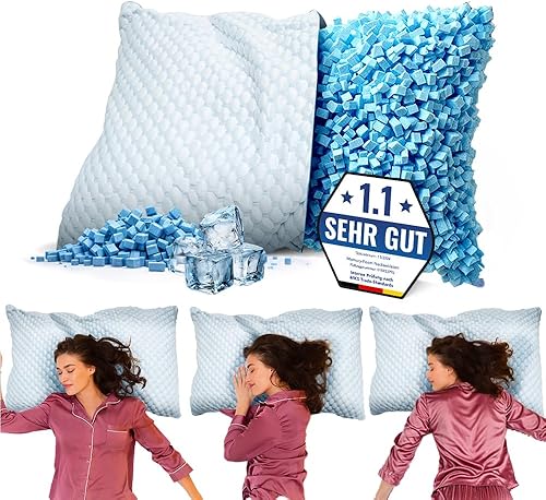 MKS Oreiller en mousse à mémoire de forme, 50 x 70 cm, pour les personnes dormant sur le côté et sur le dos, coussin de nuque ergonomique, avec gel et housse, confortable, rafraîchissant et respirant