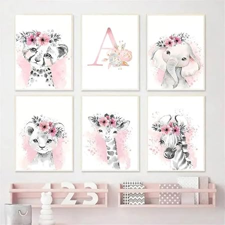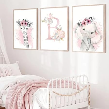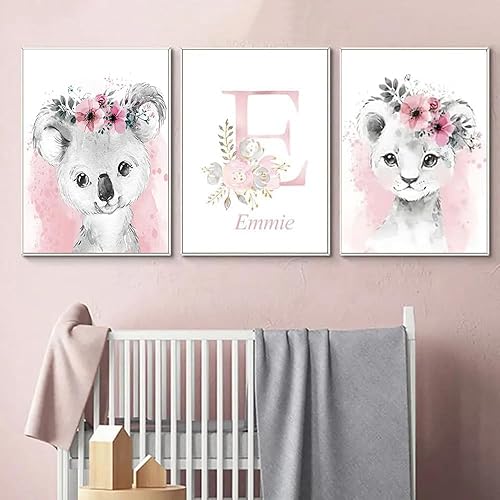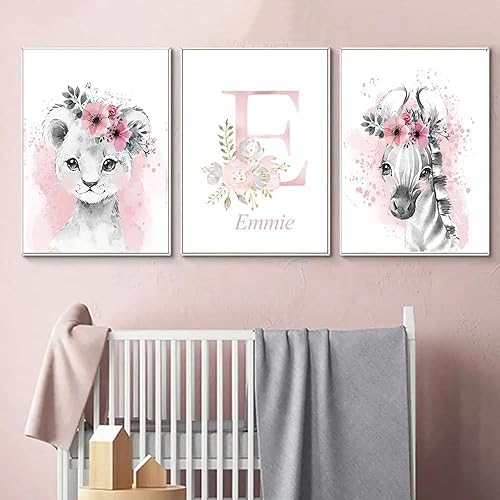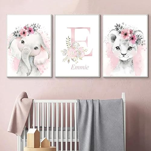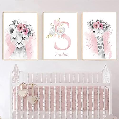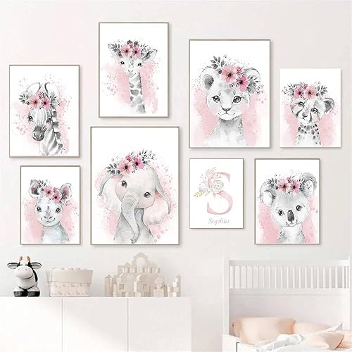 Affiche Animaux Personnalisés Prenom Bebe Fille Deco Tableau Savane Chambre Enfant 21x30 Poster Chambre Fille Rose Nom Personnalisé Originale Affiche Aquarelle Safari Toile Decoration Chambre Bébé
