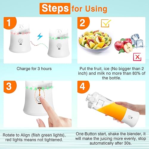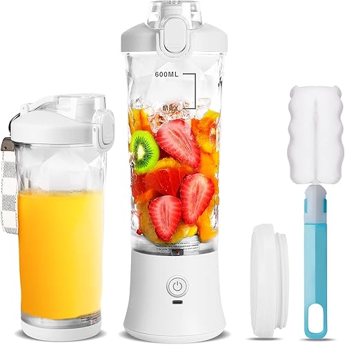 Mélangeur portable de 20 onces, de taille personnelle pour smoothies et shakes avec 6 lames, mélangeur de fruits et jus USB rechargeable avec, idéal pour la cuisine, l'extérieur (Blanc)