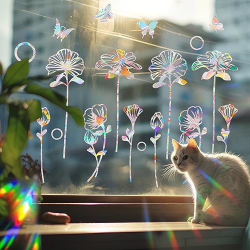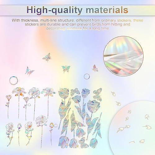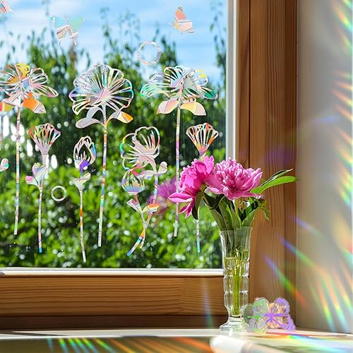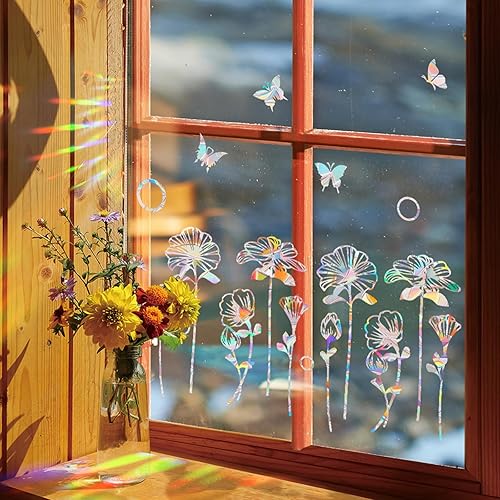 ANDARS Sticker Fenetre, 4 Pièces Suncatcher Sticker Fenetre, anti-Collision Stickers Vitre, Fleur Autocollant Suncatcher, Convient pour Chambre à Coucher, Bureau, Film pour Fenêtre