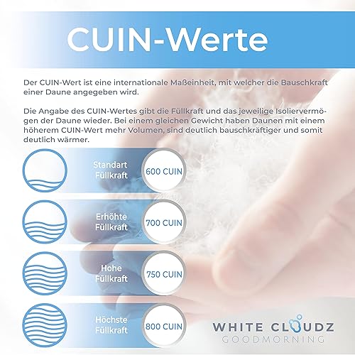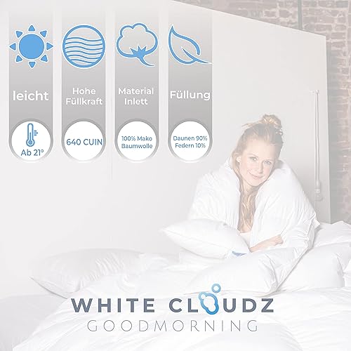 White Cloudz - Couette en Duvet Graz 140x220 cm - d'hiver - 90% Duvet de Canard européenne, Classe I, RDS