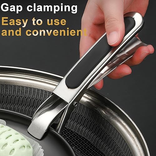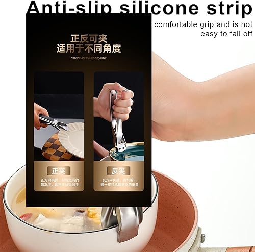 2 Pièces Pince de Cuisine en Acier Inoxydable avec Bordure en Silicone Anti-Dérapant - Pour Airfryer, Four et Casseroles Chaudes - Design Sécurisé et Poignée Ergonomique