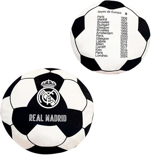 REAL MADRID Coussin ballon officiel | 40 x 40 cm | 100 % polyester | Design exclusif avec blason et 15 coupes d'Europe