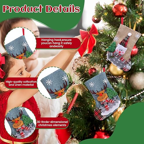 TOSUTO Lot de 7 Chaussette de Noel a Suspendre,Chaussettes de Noël à Remplir,Mini Bas de Noël pour Enfant,Enfant Décorations Sapin de Noël,adaptées aux cheminées,sapins de Noël,Murs et escaliers