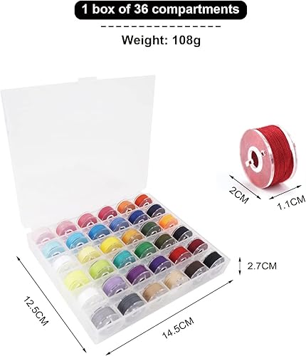 Bobines de machine à coudre, 36 couleurs bobines de fil à coudre, bobines de machine à coudre, couleurs assorties, Bobbin, bobines pré-enroulées en plastique pour Brother Babylock Janome Kenmore
