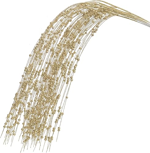 KI Store Décoration de Noël Or - Lot de 8 Branches Artificielles Décoratives avec Paillettes pour Sapin de Noël