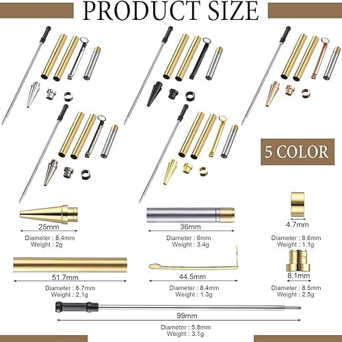 Knoruley Kit de Stylo Tourné en Bois 7mm Slim avec Recharges et Bois de Stylo pour Tournage sur Tour