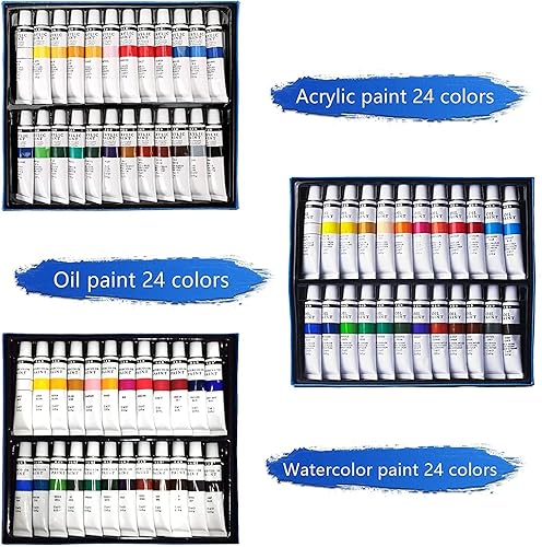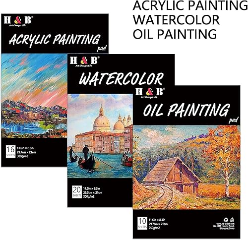 H & B Ensemble de peinture sur toile de luxe avec chevalet pliable en aluminium, 108 pièces avec peinture acrylique, pinceaux et kits de peinture sur toile