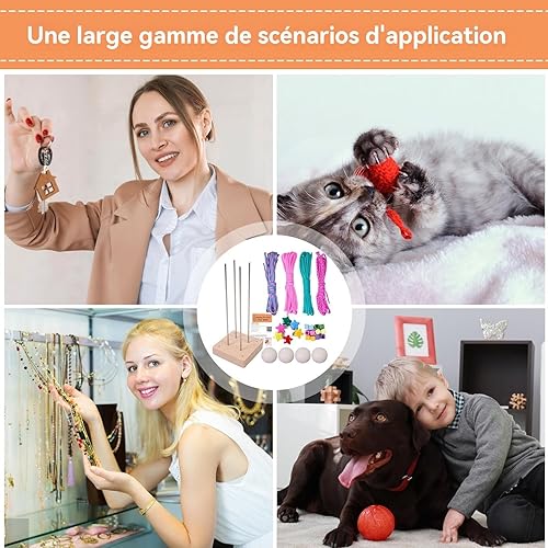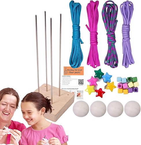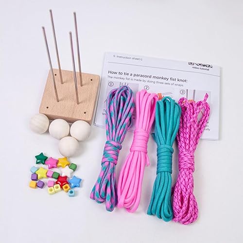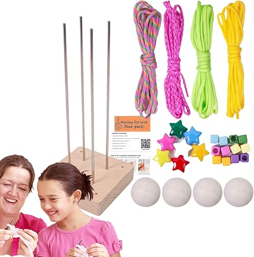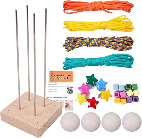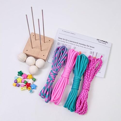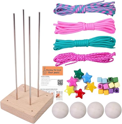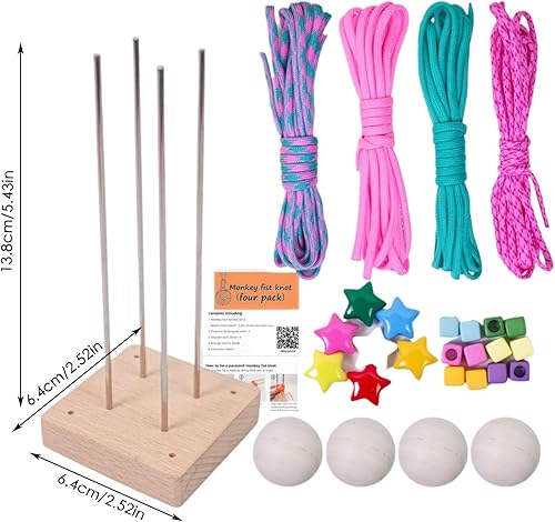Générique Monkey Fist Knot Kit, Paracord Pendant Making Set, 2.52x2.52x5.43 Inches Wooden Craft Jig, Adjustable Jewelry Accessory for Kids Adults, Natural Wood & Silver
