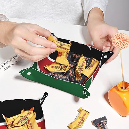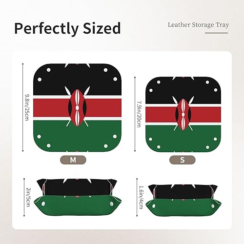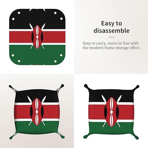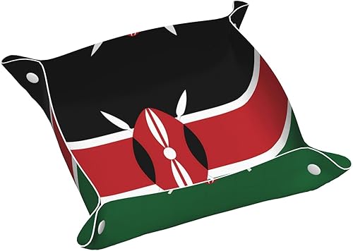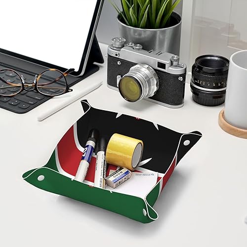 WZYWHJ Plateau de rangement en cuir pour table de chevet, bureau, coiffeuse et plus encore – Facile à nettoyer – Drapeau du Kenya imprimé