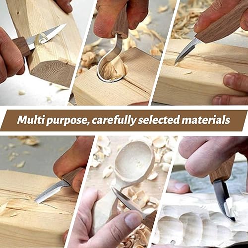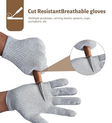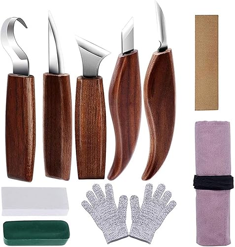 mumisuto Set de Couteau Sculpture en Bois, 10 Pièces en Noyer de Couteaux à Découper pour les Débutants et les Professionnels avec Gants Résistants aux Coupures, Manche et Pierre à Aiguiser