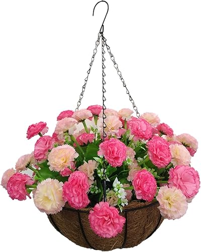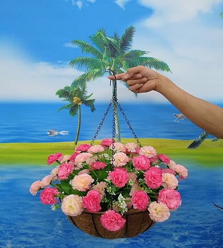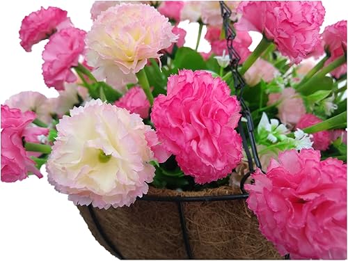 Home and Outdoors - Suspension de fleurs artificielles en soie rose clair - Décoration de maison et d'extérieur - Panier de fleurs à suspendre - Panier moyen