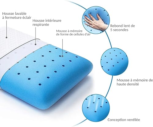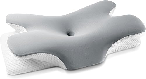 Ehomfory Oreiller Ergonomique Cervical, 2 en 1 Oreiller Memoire Forme pour la Nuque, Oreiller pour Dormir sur Le côté, Le Dos et Le Ventre, Gris