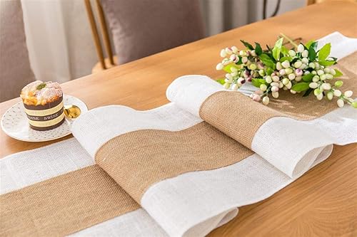 Eushine Chemin de Table en Jute, Deux Couleurs Épissage, Utilisé pour la Décoration Intérieure dans Un Style Rétro Naturel, Réunions de Famille, Mariages, Décorations D'hôtel, 183 * 30cm