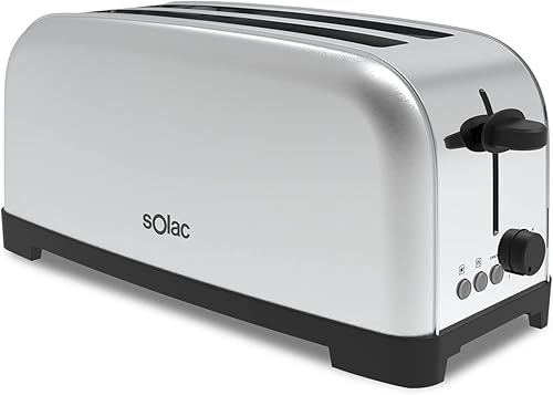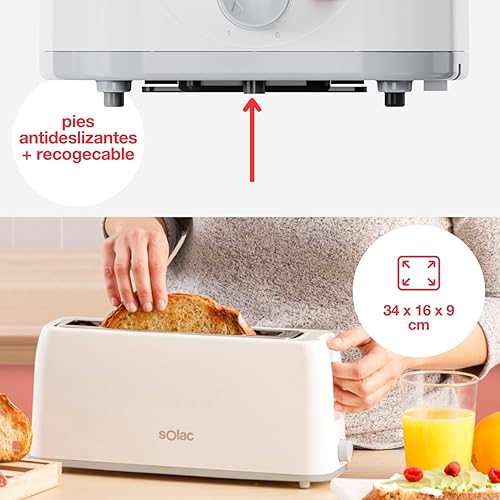 Solac - Grille-Pain Buon Giorno Double 1200W | Deux Fentes Longues | Sélecteur 6 Niveaux | Système d'Auto-Centrage | Élévation Supplémentaire | Tiroir Ramasse-Miettes Amovible | Rangement du Câble