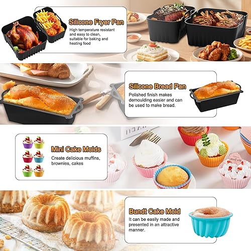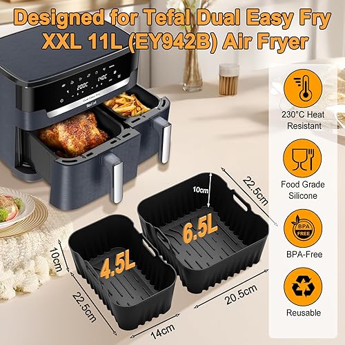 Accessoires de friteuse à air pour Tefal Dual Easy Fry XXL 11L (6,5L + 4,5L), ensemble de 21 moules en silicone pour accessoires de friteuse à air pour friteuse à air chaud Tefal EY942B