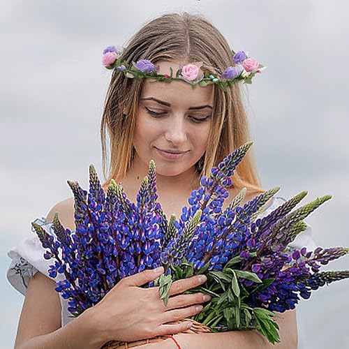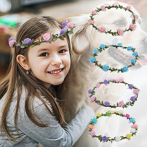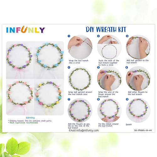 INFUNLY Lot de 12 couronnes de fleurs faites à la main - Kit de bricolage pour vos propres couronnes de fleurs - Accessoires pour cheveux - Cadeau pour mariage, anniversaire, fête, cadeau d'invités,