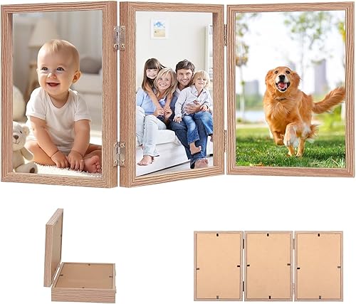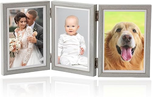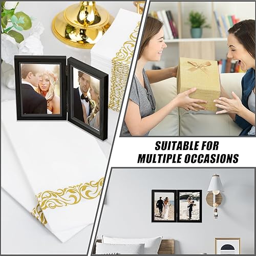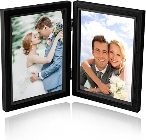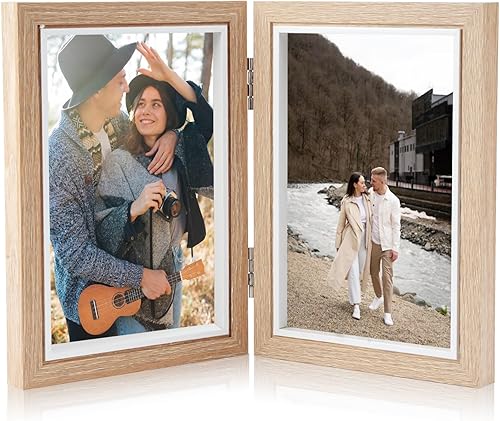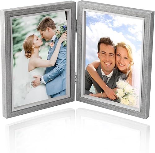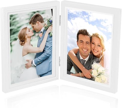 Baieye Cadre Photo Double 10x15cm,Cadre Photo en Bois Pliable,Cadres 2 Photos,pour Famille,Amis,Décoration Intérieure,Mariages(Blanc)