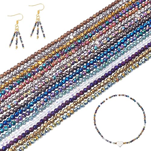 AHANDMAKER Lot de 15 brins de perles rondes en verre à facettes de 3 mm - Perles d'espacement pour la fabrication de bijoux, colliers, bracelets, boucles d'oreilles, travaux manuels, décoration