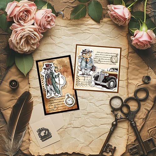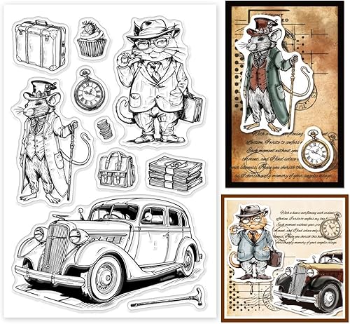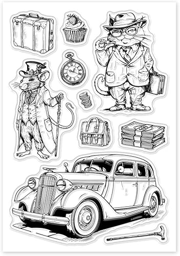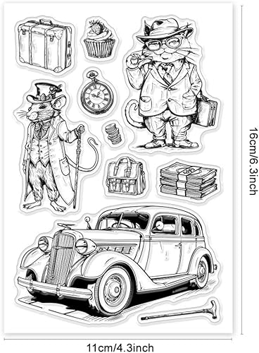 GLOBLELAND Tampons Transparents en Silicone pour Chat Gentleman Souris Voiture Valise Montre de Poche. Parfaits pour le Scrapbooking DIY la Création de Cartes les Albums Photo et les Journaux.
