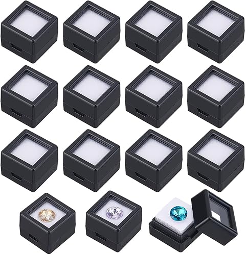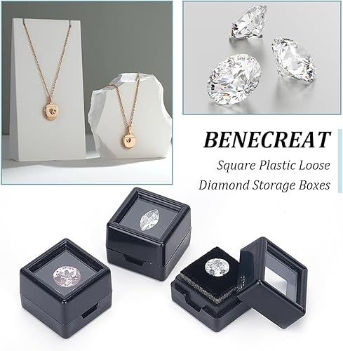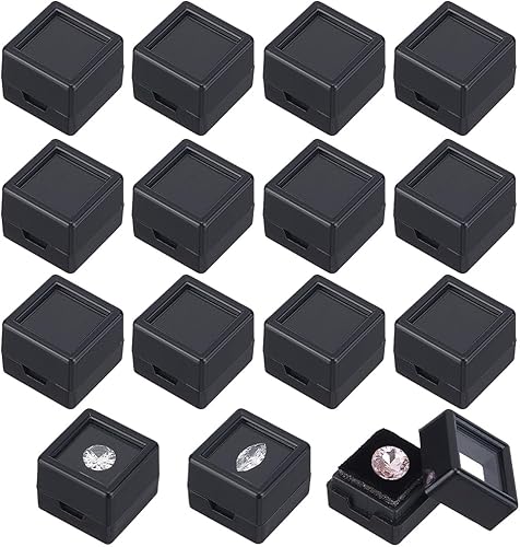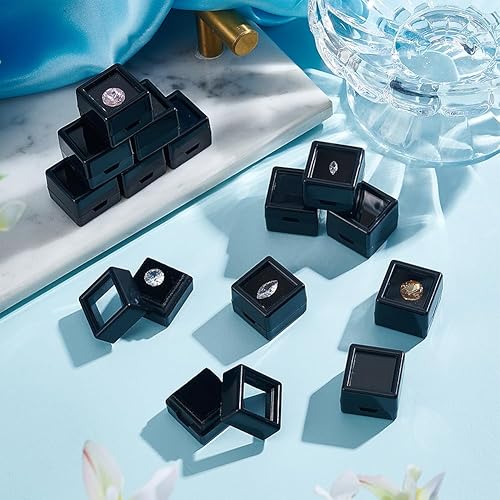 BENECREAT 36 paquet Boîte de Présentation de Pierres Précieuses Boîtier de Diamant en Acrylique Récipient à Bijoux Noir avec Couvercles Transparents, Éponge Noire 2x1.6 cm pour Friandise de Festival