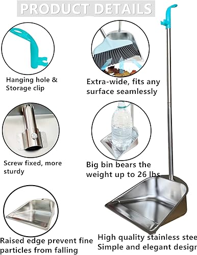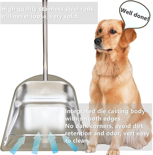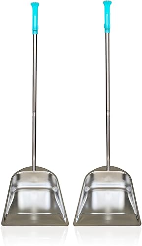 Lot de 2 pelles à poussière avec long manche pour la maison, 85,1 cm en acier inoxydable robuste de qualité supérieure, design élégant, pelle robuste pour la maison/hall/magasin/bureau