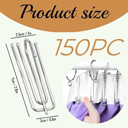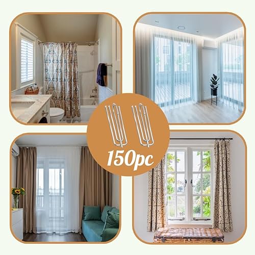 IATAHI Crochets à Rideau Epais,150pcs Crochets à Rideaux en Acier Inoxydable,Crochets Rideaux,Accroche Rideau,Crochets de Rideaux Pince,4 Broches Crochets Griffes de Rideau