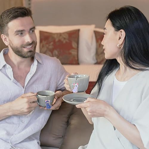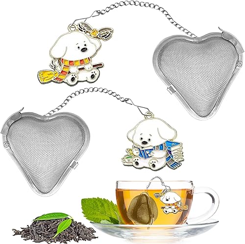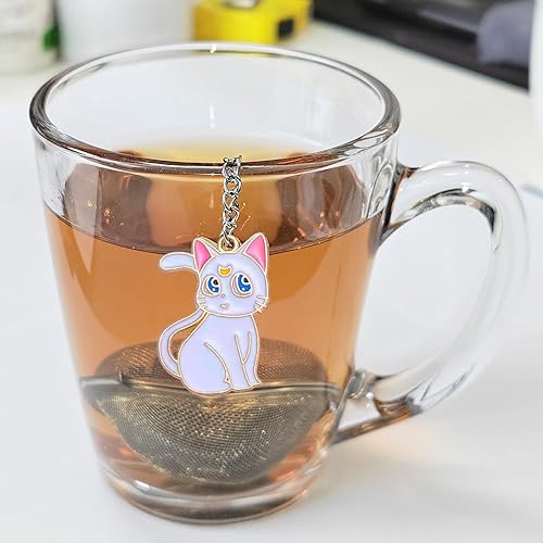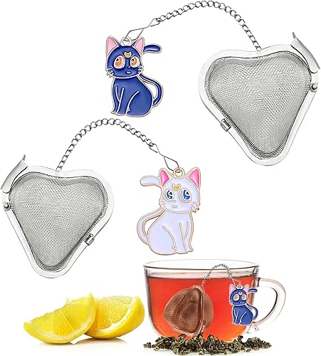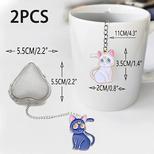LUHEVIDIA 2PCS infuseur thé, boule a the en acier inoxydable en forme de cœur + pendentif animal mignon, boule a the infuseu rend la dégustation du thé amusante(Chat noir + chat blanc)