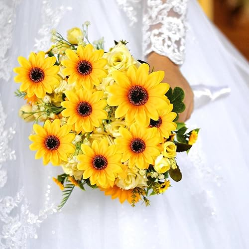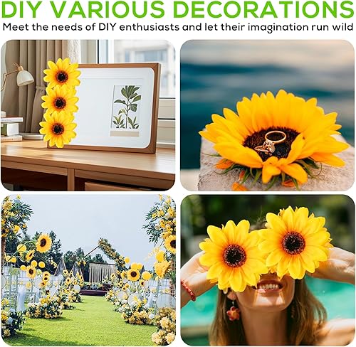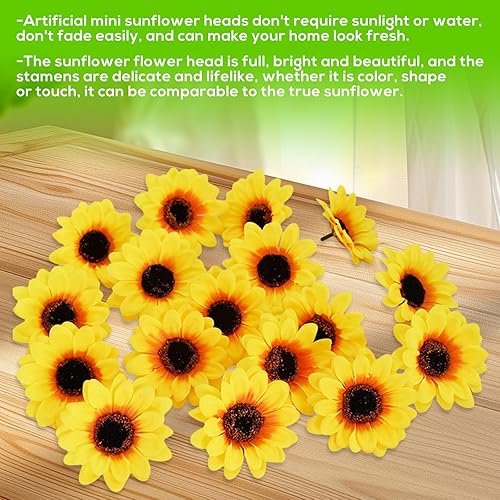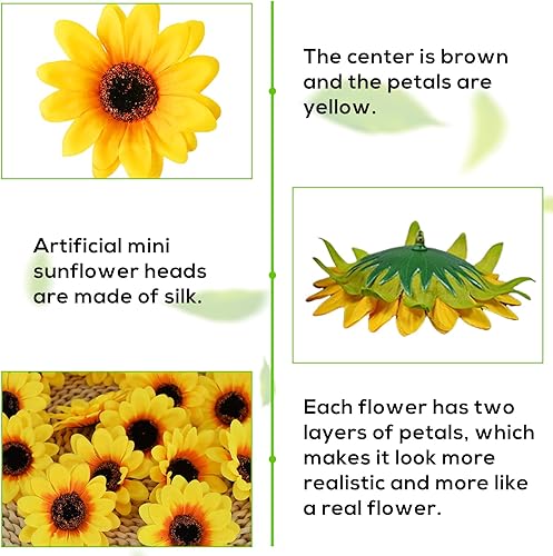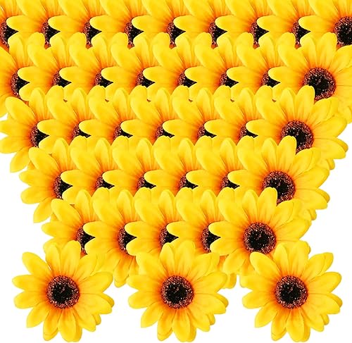 Lot de 50 têtes de tournesol artificielles, têtes de fleurs artificielles, tournesols artificiels, tournesols artificiels, lanière, têtes de tournesol artificielles, pour bricolage