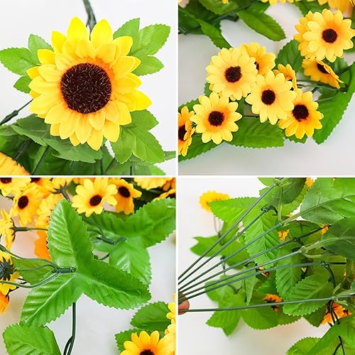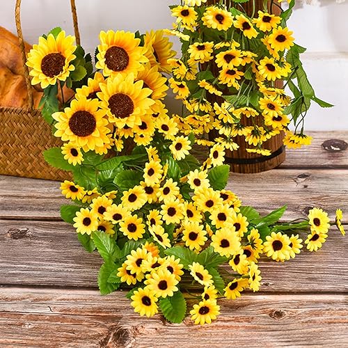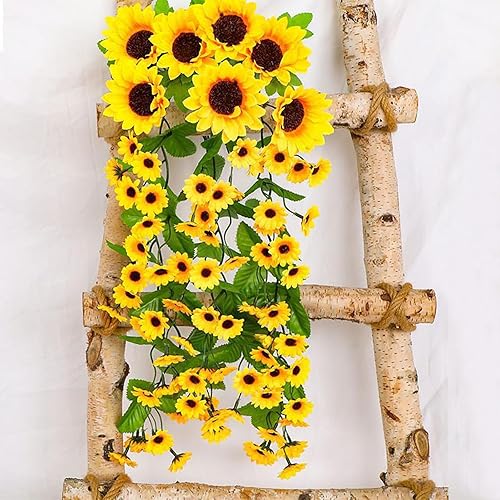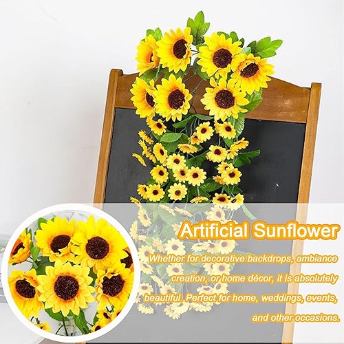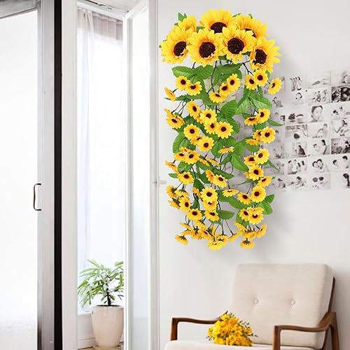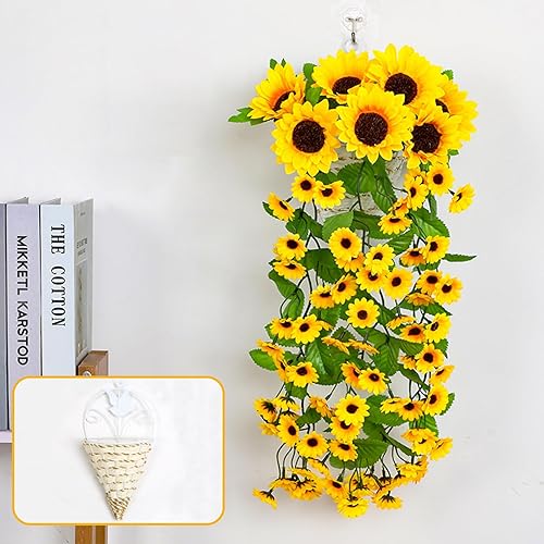 Lxoraziy Guirlande de Tournesol Artificielle avec Panier Triangulaire, 88 Fleurs, 66 cm, Plante Artificielle Tombante pour Décoration Intérieure et Extérieure