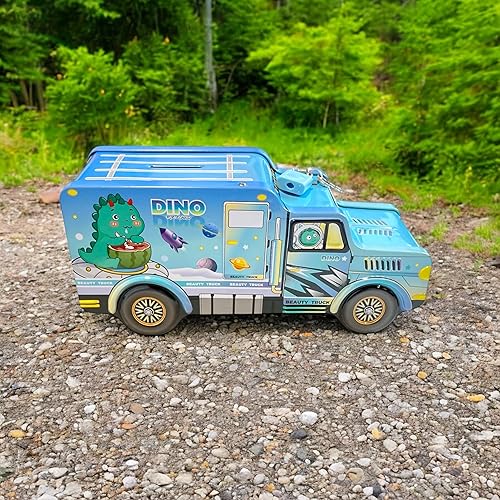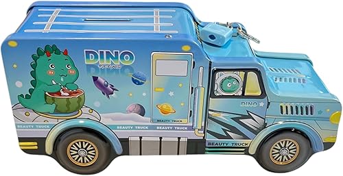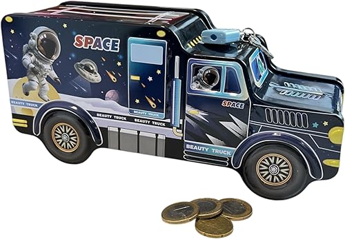 Tirelire pour enfant en forme de camion avec cadenas - Dinosaure Licorne, Astronaute - Métal (Camion Dino)