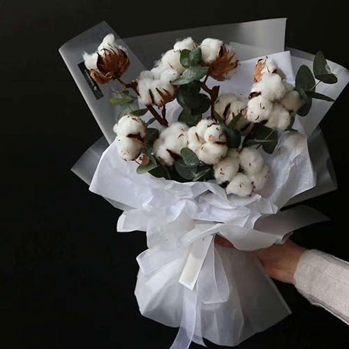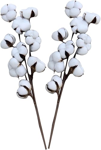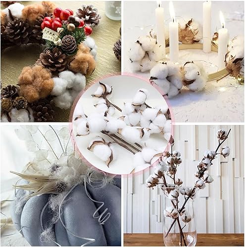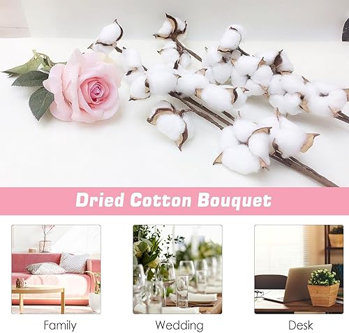 Lot de 4 branches de coton séchées, bouquets de fleurs séchées, décoration de mariage ou de table, fleurs séchées en coton