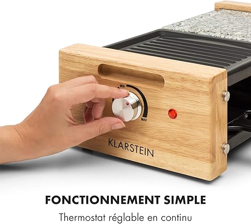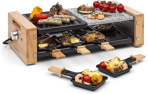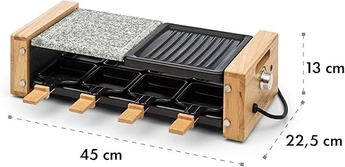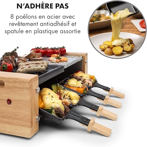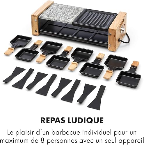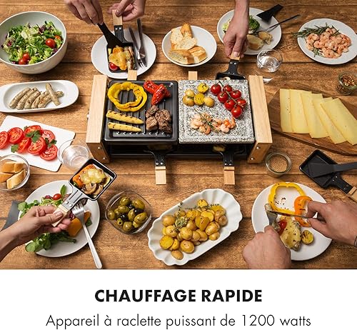 Klarstein Chateaubriand Nuovo Raclette avec pierre naturelle - gril à raclette - 1200W, aluminium/pierre, 8 personnes, inox, avec accessoires, noir-brun