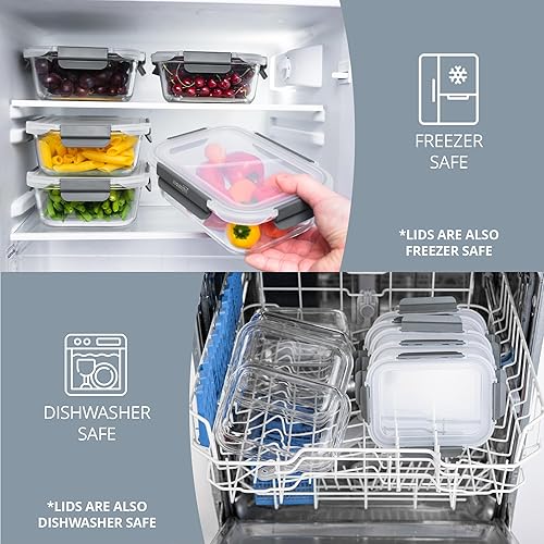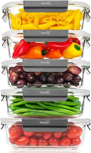 Homiu Lot de 5 boîtes alimentaires en verre avec couvercles | Boîtes hermétiques en verre pour la préparation des repas | Sans BPA anti-fuite | Boîtes à déjeuner réutilisables qui passent au