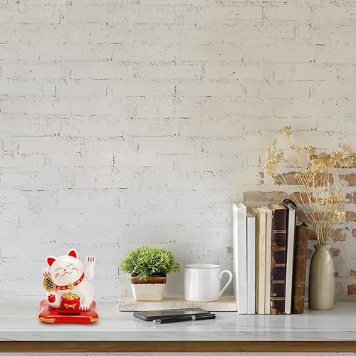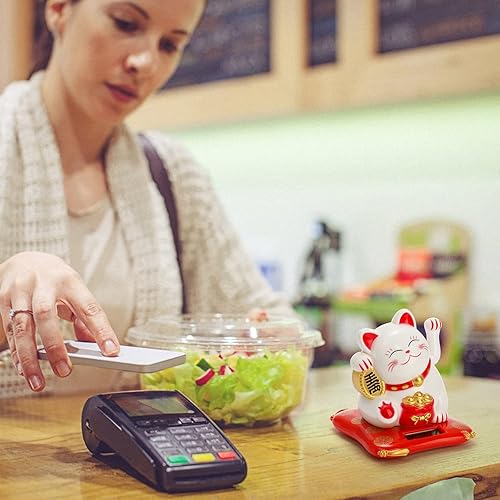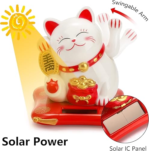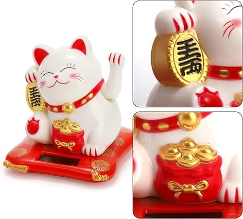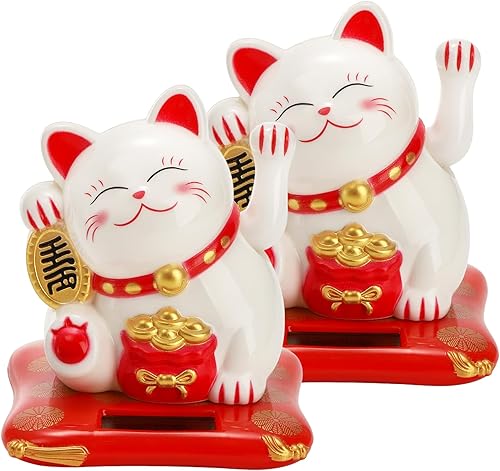 YOUEON Lot de 2 Chats agitant à l'énergie Solaire, Maneki Neko Japonais, Chat Blanc Mignon Qui Attire Les Regards, décoration Feng Shui pour la Maison, Le Bureau, Les magasins, Les Restaurants