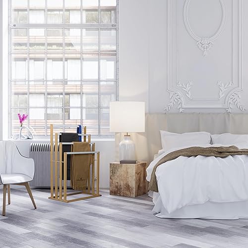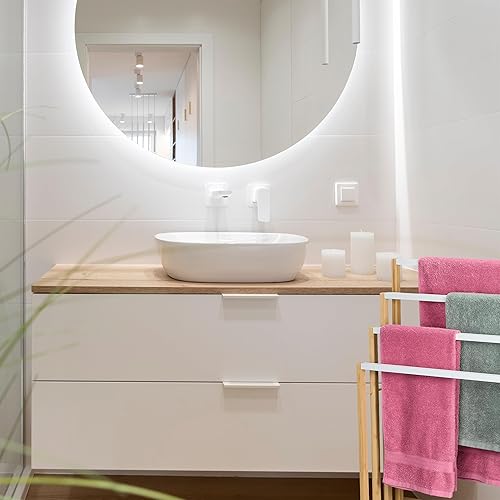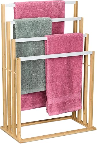 Relaxdays Porte-Serviettes en Bambou, 4 Barres en quinconce, H x L x P : 82 x 55 x 31 cm, Salle de Bain, Nature et Blanc
